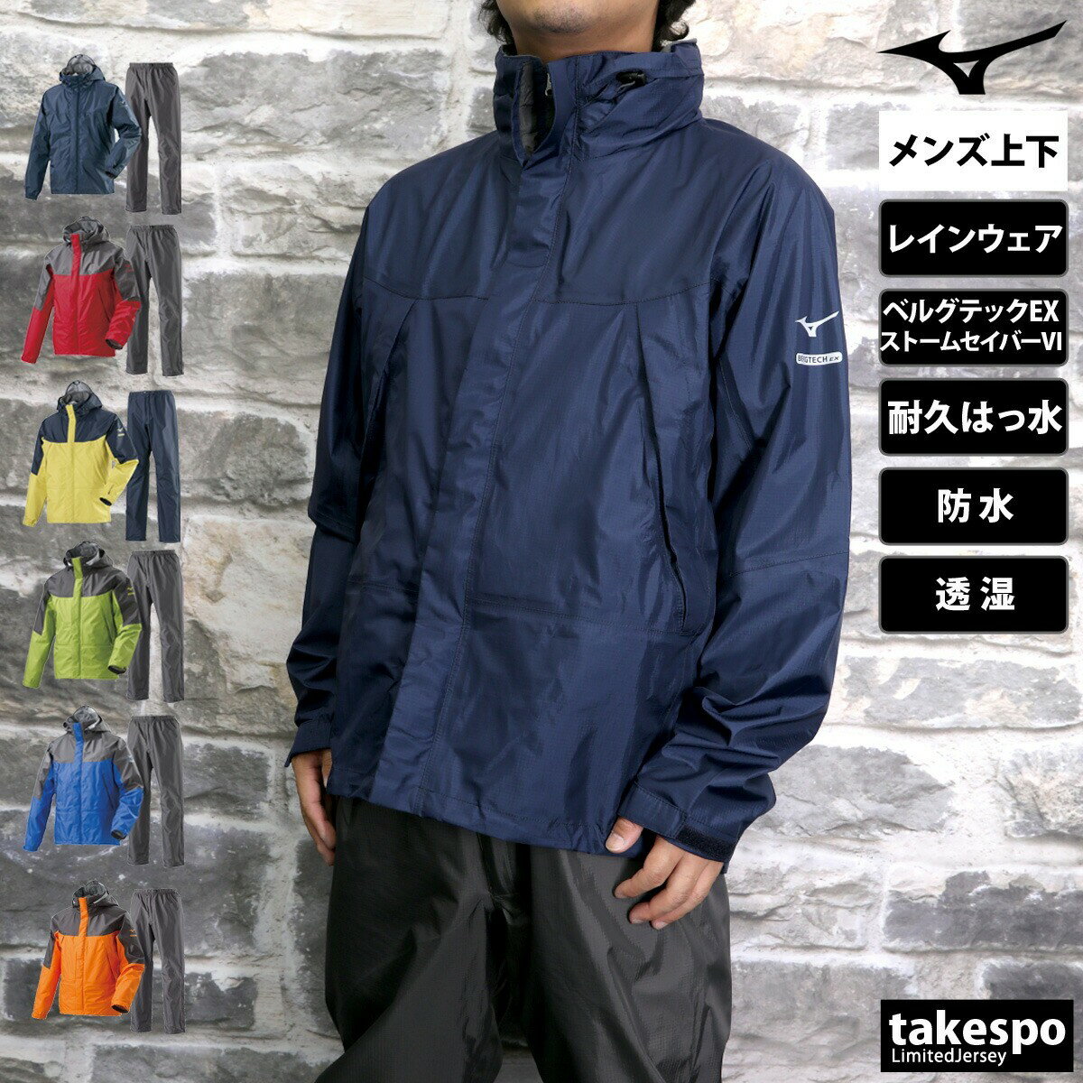 スーパーセール最大3000円オフクーポン有! ミズノ レインウェア 上下 カッパ 雨具 セットアップ レインコート メンズ ブランド ベルグテックEX Mizuno A2MG8A01 フード付き(収納式) 登山 ハイキング はっ水 定番 上下セット 大きいサイズ 有 スポーツウェア
