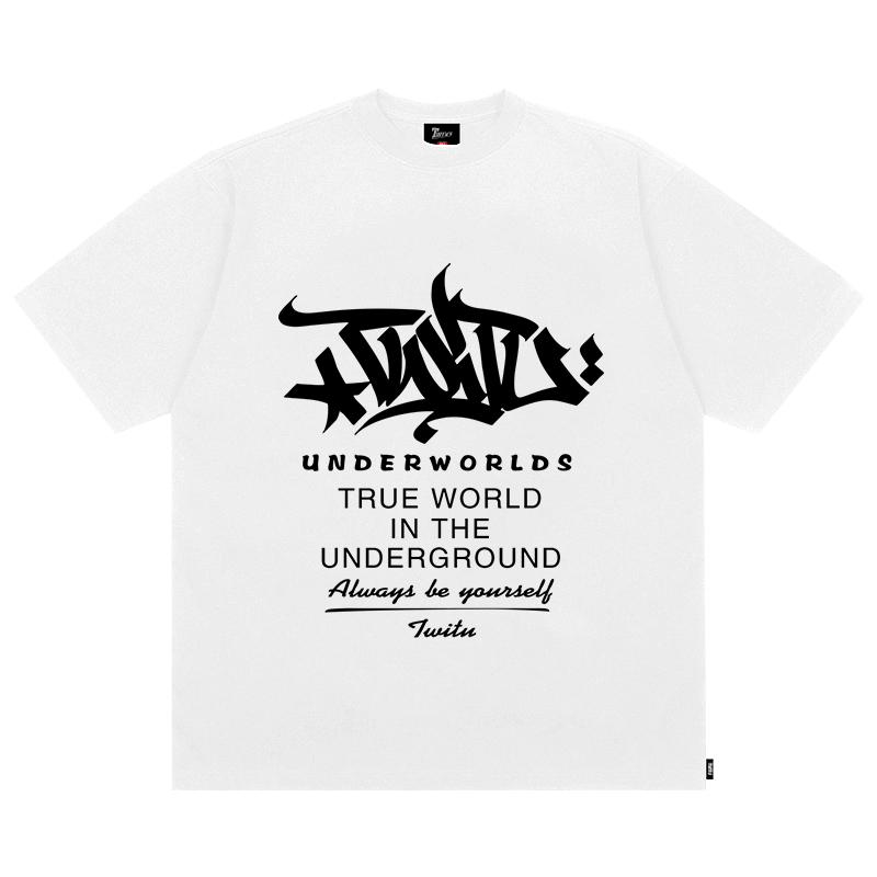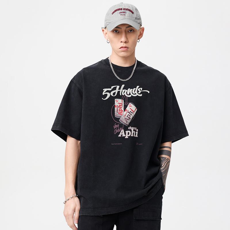 メンズ Tシャツ 半袖 トップス ダーク グラフィティ 文字 ストリート ヒップホップ 重め 300g アメリカン レトロ ゆったり