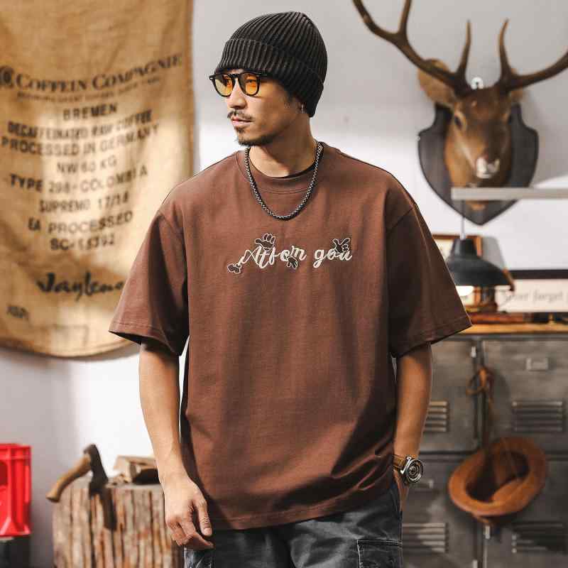 ・スタイル: アメカジ・主な素材: コーマ綿96%以上・柄: 文字・シルエット: ルーズフィット・対象: ティーン・タイプ: プルオーバー・ネックライン: クルーネック・袖丈: 半袖・厚さ: 薄手・シーン: スポーツ・ディテール: 刺繡・加工: ノンアイロン加工・カラー展開: コーヒー、ダークグリーン、ブラック・サイズ展開: M、L、XL、2XL、3XL、4XL・カテゴリ: Tシャツ・袖タイプ: ドロップショルダー・生地重さ: 約250g〜300g未満・機能: 抗菌・性別: メンズ