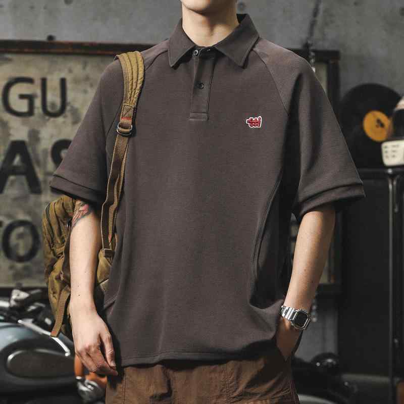 ポロシャツ メンズ トップス 300ℊ ヘビーウェイト Tシャツ 半袖 カジュアル シンプル 半袖 ラグランスリーブ コットンブレンド ゆったり