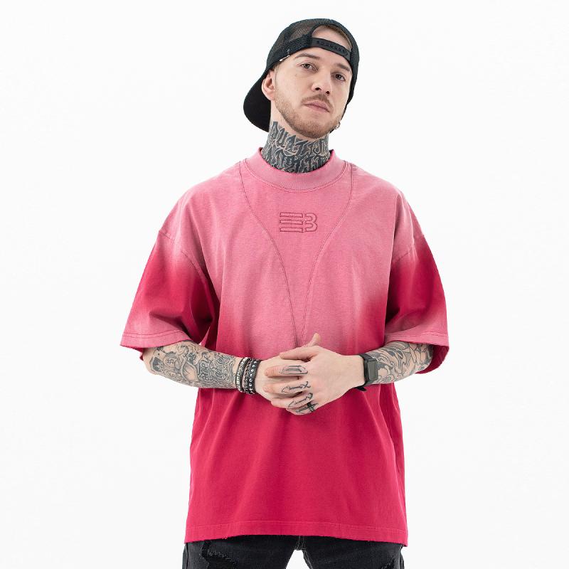 メンズ カジュアル おしゃれ グラデーション Tシャツ オーバーサイズ UPF30 ゆったり ウォッシュド オールド加工 刺繍 300g コントラストカラー アメリカ ストリート 大きいサイズ 無地 シンプル 合わせやすい