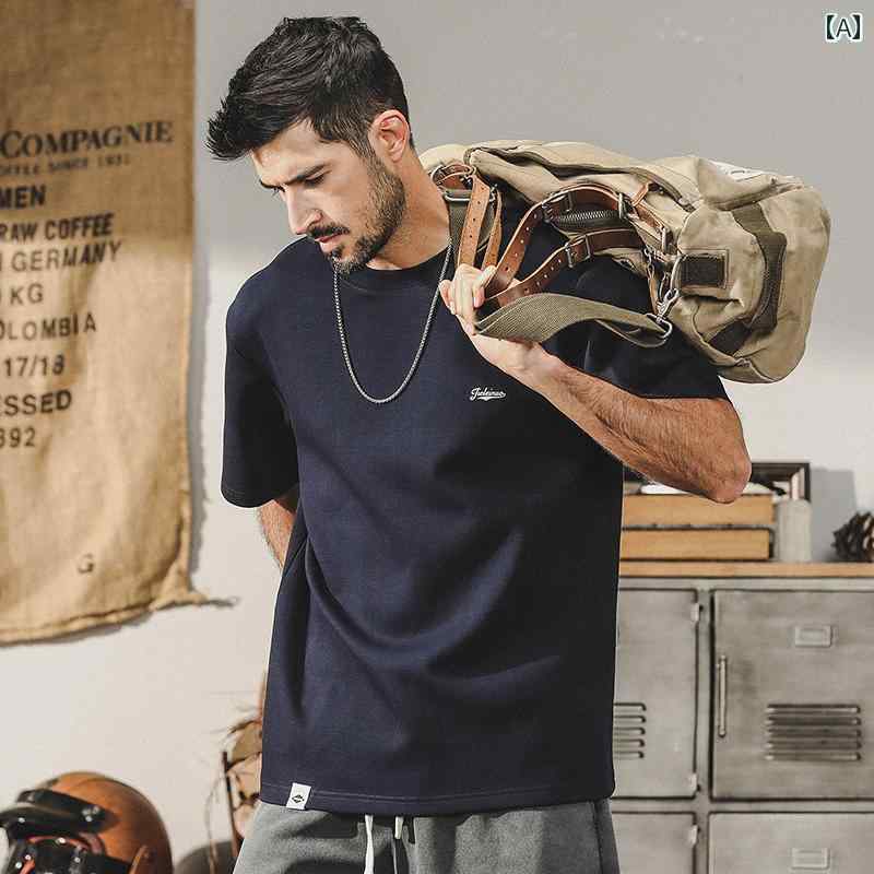 ・カテゴリ: Tシャツ・スタイル: アメリカンヴィンテージ風・デザイン: プルオーバー・主な素材: 綿81%、ポリエステル19%・リブ部分素材: 綿95%、ポリウレタン5%・ネックライン: クルーネック・袖丈: 半袖・袖タイプ: ドロップショルダー・柄: 文字・プリントテーマ: 文字デザイン・加工: プリント加工・シルエット: ルーズフィット・厚さ: 普通・重さ: 約300g・機能: 吸湿速乾・用途: カジュアル・性別: 男性・カラー展開: 溶岩レッド、ホワイト、ブラック、グレー、ダークブラウン・サイズ展開: S, M, L, XL, 2XL, 3XL, 4XL