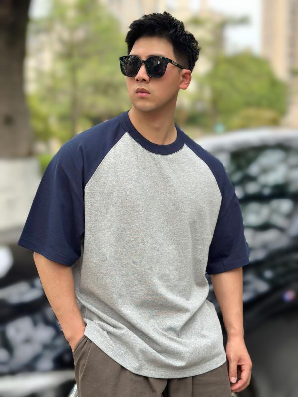 シャツ トップス メンズ 300g 厚手 ヘビーウェイト ラグラン ゆったり 半袖 アメリカン レトロ Tシャツ 綿 カラーマッチング カジュアル 大きいサイズ Tシャツ