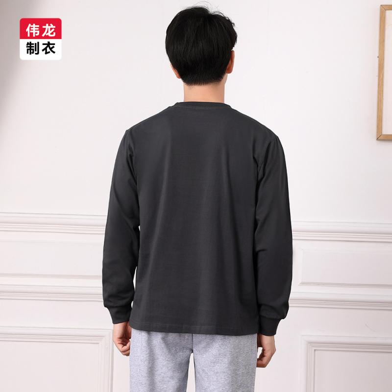 Tシャツ メンズ 男性用 長袖 300G 厚手 綿 ゆったり 春秋 トップス カットソー インナーシャツ ラウンドネック 黒 白 杏色