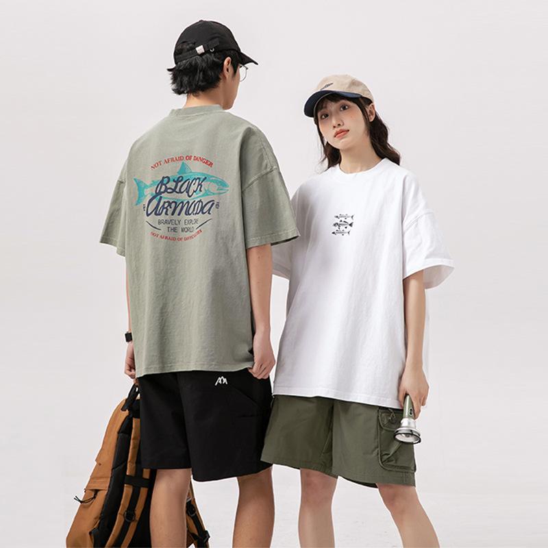 Tシャツ 半袖 メンズ ストリート おしゃれ 紳士服 シャツ ラウンドネック 夏 300g アメリカン カジュアル ゆったり シンプル