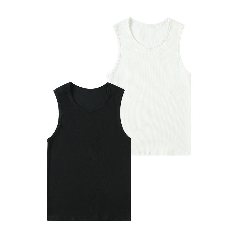 タンクトップ メンズ 男性用 リブ 300g コットン 綿 ノースリーブ Tシャツ 春 カジュアル ゆったり 白 黒