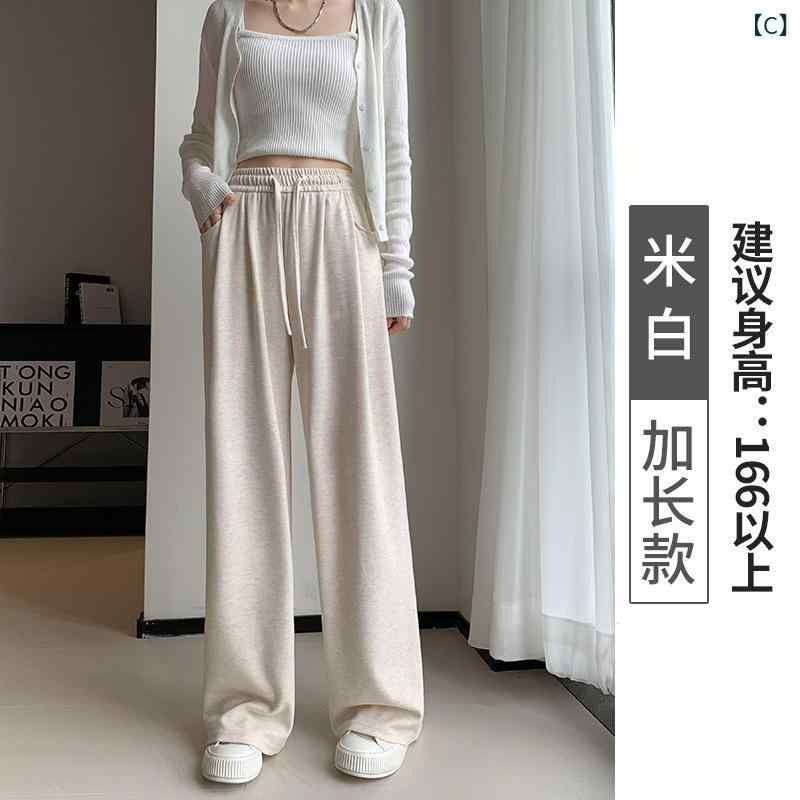 パンツ レディース 300g コットン 羊毛 カシミヤ 高見え 春秋 運動 スポーツ 高腰 ハイウエスト ゆったり リラックス ルーズ カジュアル ストレートパンツ S M L XL ミルクティー ベージュ グレー ブラック コーヒー