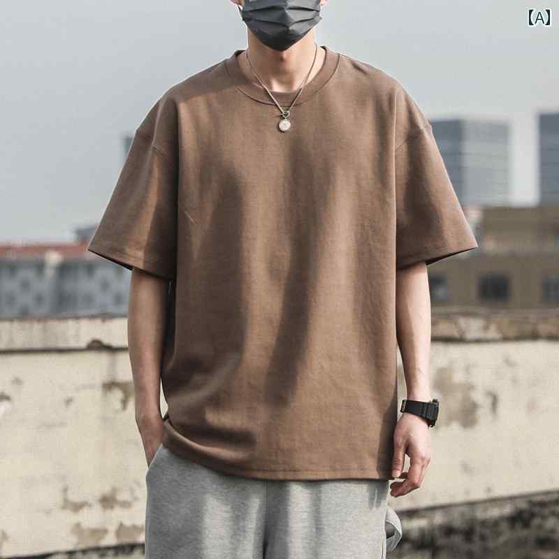 Tシャツ ゆったり インナー 300 G ヘビー テクスチャー コットン ラウンドネック ゆったり 厚手 アメリカン レトロ 無地 細 襟 半袖 t シャツ 男女兼用