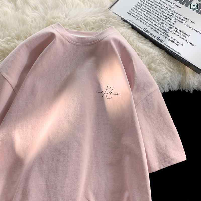 メンズ ストリート シャツ ピンクの 綿 半袖 Tシャツ メンズ 夏の ファッション 300 g 重い ゆったり 2025