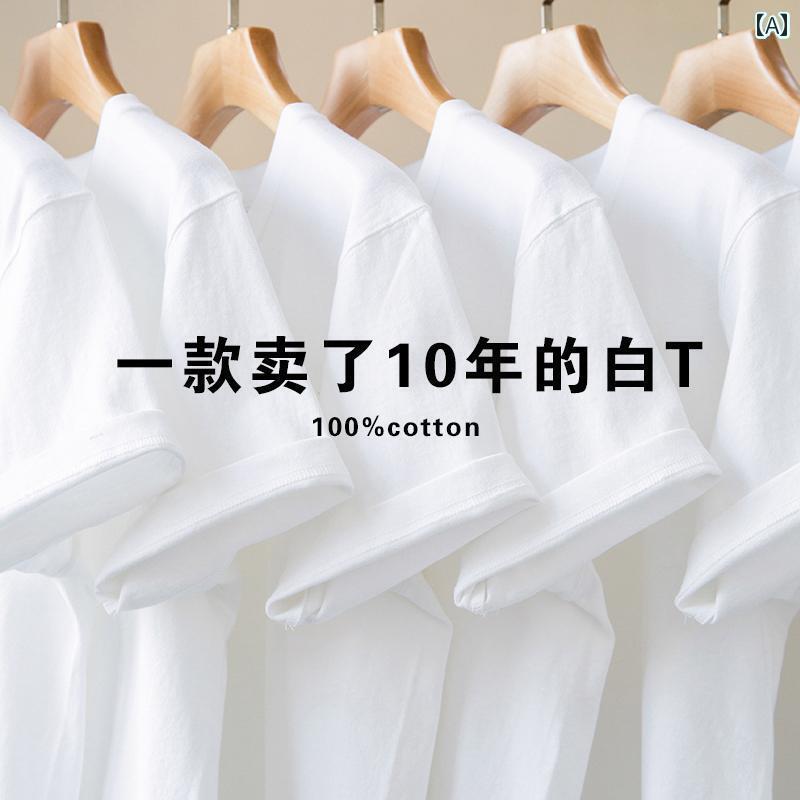 Tシャツ シャツ シンプル ウイグル 綿 300 g 厚手 半袖 Tシャツ 白 透けない 男女 カップル ゆったり 丸 首 レイヤリング シャツ