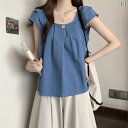 ギャザーシャーリングブラウストップス シャツ ブラウス ロングシャツ チュニック 春夏 秋 レディース ミセスファッション ストライプ ギャザー タックブラウス 工場 スーパー 100 kg 大きいサイズ ミリメートル フライング スリーブ プリーツ
