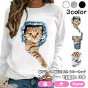 トレーナー 可愛い 3D 猫 犬 レディース 長袖 裏フリース 微起毛 秋冬 クルーネック ねこ いぬ 黒 白 グレー 面白い おもしろ アニマル おしゃれ かわいい トリックアート