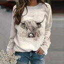 スウェット トレーナー レディース 女性用 クルーネック ゆったり ルーズフィット アニマル柄 3Dデジタルプリント ポリエステル カジュアル おしゃれ ファッション 普段使い トップス 秋冬