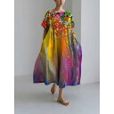 ワンピース レディース 3Dデジタルプリント 半袖 ロング丈 Aライン クルーネック カジュアル ポリエステル プルオーバー ミドルウエスト 秋