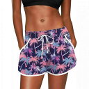 ショートパンツ レディース 薄手 ウエストゴム ストレッチ 3Dデジタルプリント ミニ丈 カジュアル リラックスウェア ハワイアン ビーチ ストリートファッション 春夏