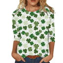 Tシャツ レディース 3Dデジタルプリント 立体柄 セントパトリックスデー グリーン 緑 ラウンドネック 七分袖 ポリエステル素材 ゆったり カジュアル かわいい リラックスフィット 春夏 大きいサイズ対応 トップス(x2)