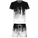 セットアップ メンズ レディース 半袖Tシャツ ショートパンツ 3Dデジタルプリント インクジェット柄 スポーツ カジュアル 夏 普段使い 部屋着 メッシュ生地 ポリエステル 吸湿速乾 軽量(x2)