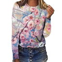 Tシャツ レディース トップス 長袖 プルオーバー ラウンドネック ポリエステル メッシュ 花柄 3Dデジタルプリント ゆったり ルーズフィット 森ガール スイート フェミニン カジュアル 普段使い 春夏(x2)