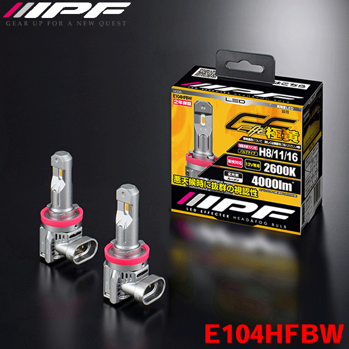 IPF LED エフェクター ヘッド & フォグ バルブ 2600K シリーズ E104HFBWH8/11/16 12v 25/25w 2600k 4000lm バルブ2本分 パーツキング E1E1