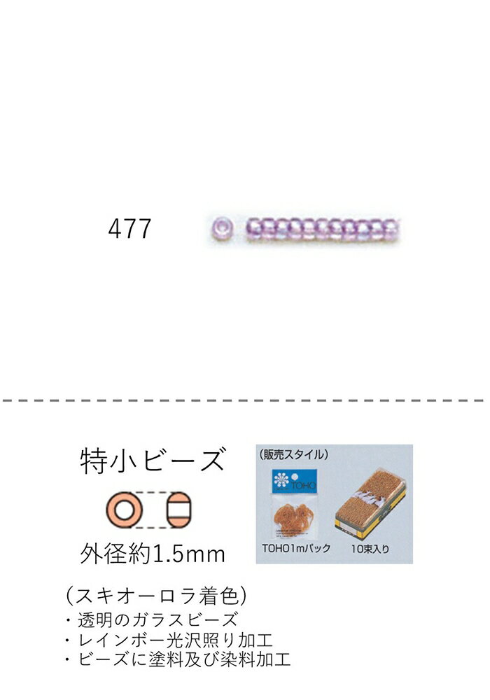 【スーパーSALE★全品P10倍 12/11 01:59まで】特小ビーズ (外形:1.5mm) スキオーロラ着色 糸通し1mパック(約960粒) (NO.477) 【トーホービーズ公式:ファクトリー直送】 (TOHO グラスビーズ パーツ) 小物 上品 日本製 ビーズステッチ