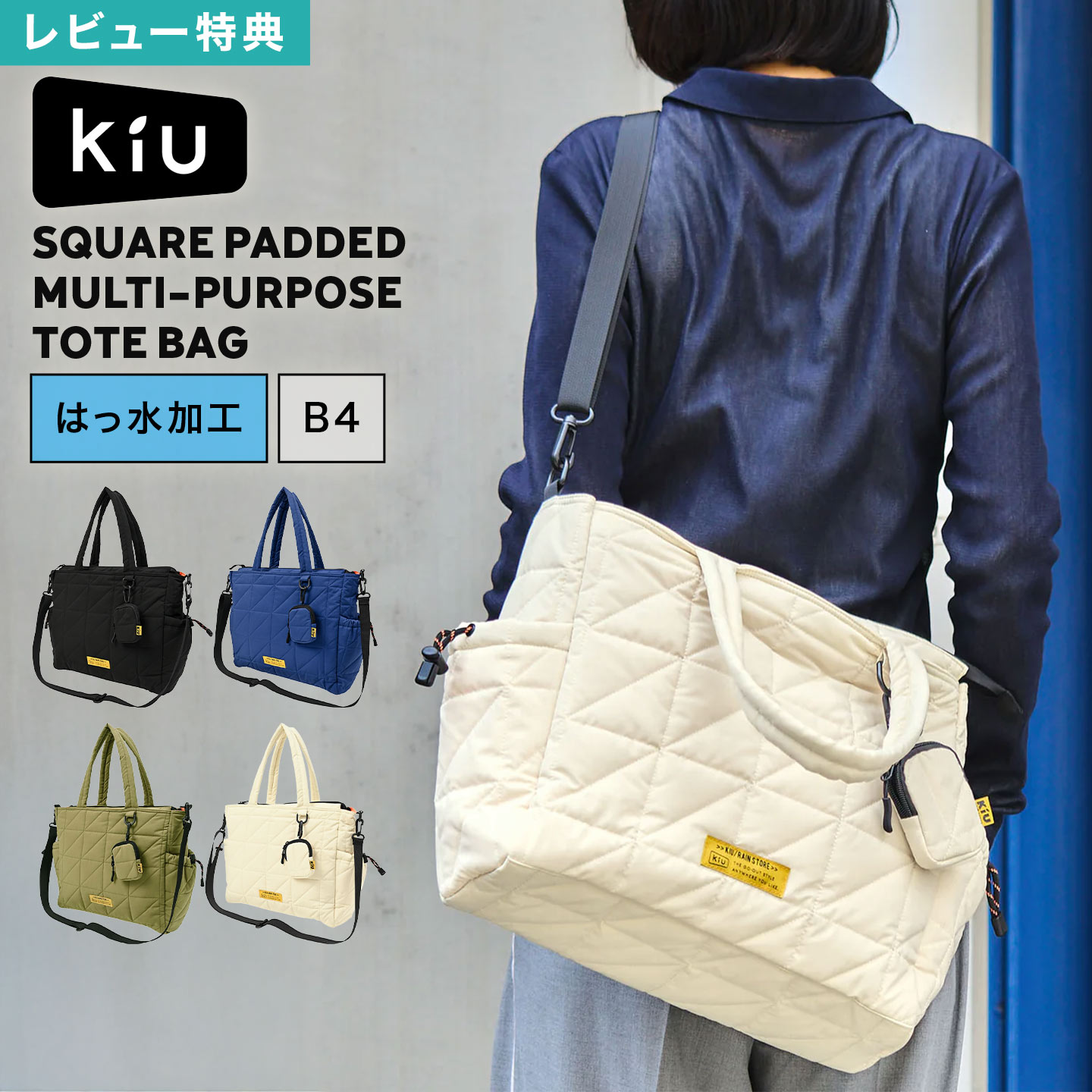 KiU キウ トートバッグ キルティング ショルダーバッグ K477 メンズ レディース 大容量 2way 斜めがけ 肩掛け 自立 ミニポーチ付き スクエアバッグ 撥水 軽量 A4 B4 14.5L 14インチ パソコン入る おしゃれ シンプル 黒 ブラック カーキ アイボリー 青 通勤 通学
