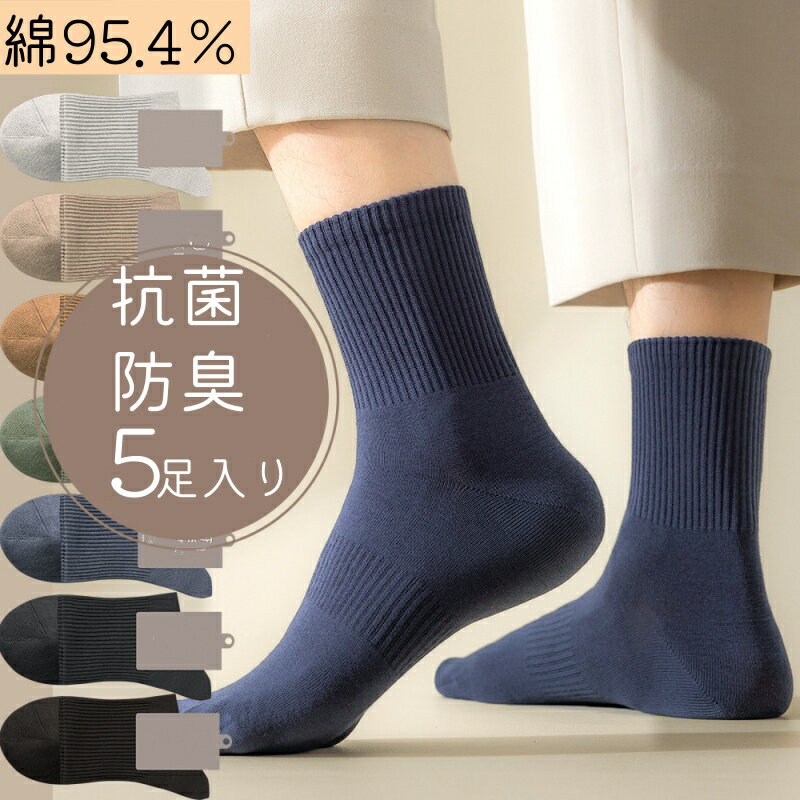 【スーパーSALE特典中】 ソックス メンズ 秋冬 クルー丈 5足セット 防臭 綿 綿95.4% 中厚 男性用 靴下 ワンサイズ 24-28cm 伸縮性よい 履き心地よい 快適 防寒 暖か 柔らか ビジネス 日常 通勤 抗菌 冷えとり 通気 クルーソックス 紳士靴下 まとめ買い おしゃれ かわいい