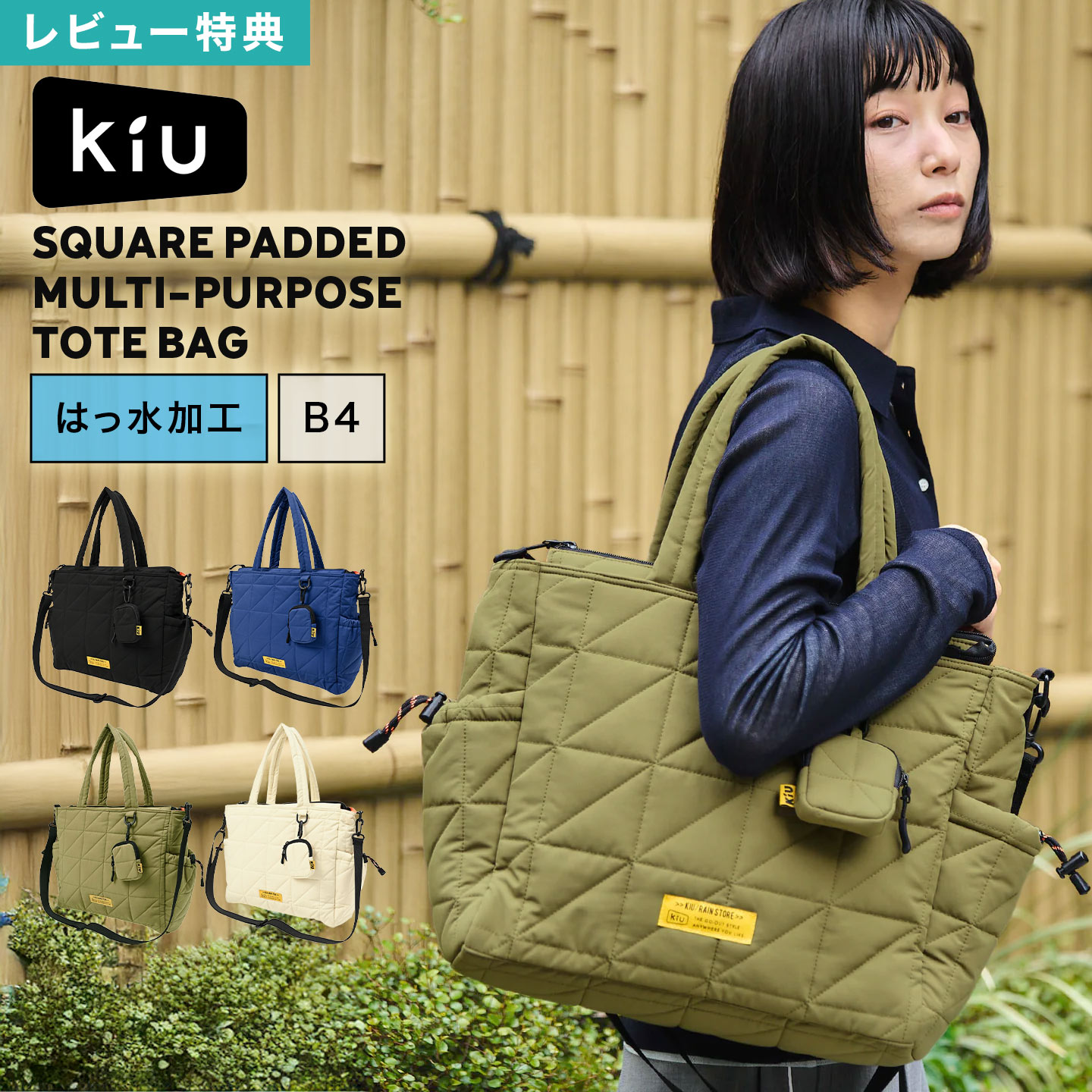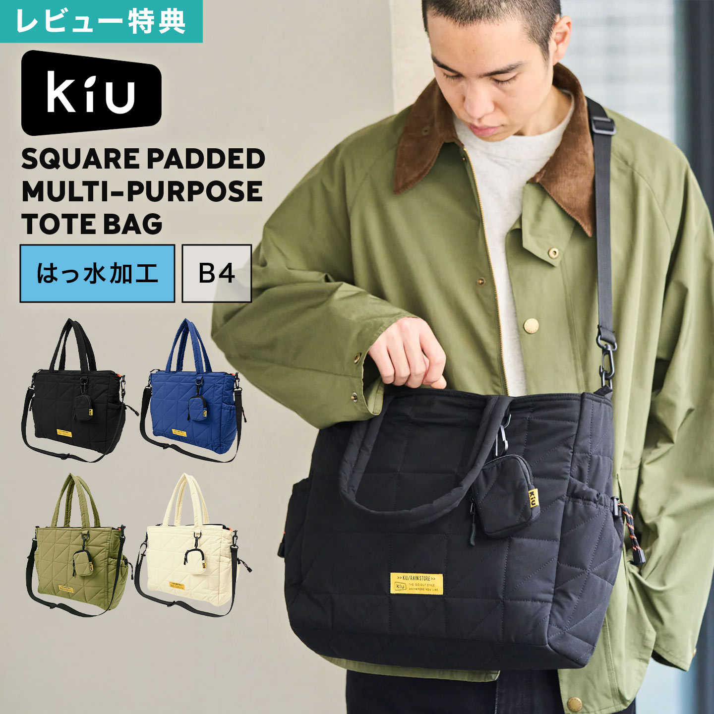 KiU キウ トートバッグ キルティング ショルダーバッグ K477 メンズ レディース 大容量 2way 斜めがけ 肩掛け 自立 ミニポーチ付き スクエアバッグ 撥水 軽量 A4 B4 14.5L 14インチ パソコン入る おしゃれ シンプル 黒 ブラック カーキ アイボリー 青 通勤 通学
