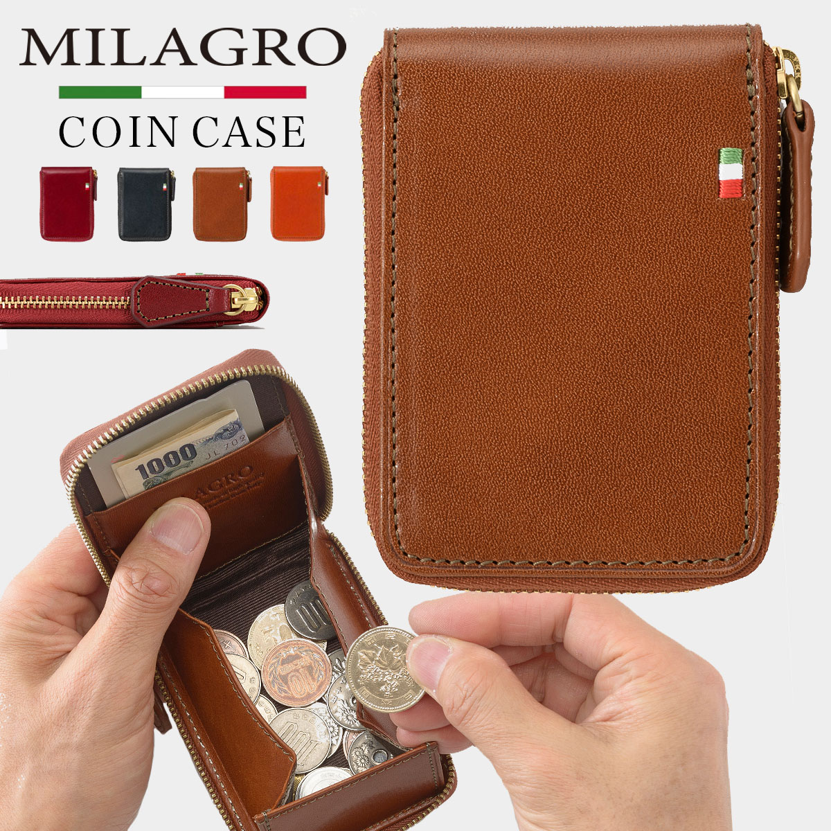 小銭入れ メンズ コインケース 高級 ギフト 誕生日 プレゼント おしゃれ ボックス型 Milagro ミラグロ イタリア製ヌメ革 テラローザブラウン ラウンドジップボックスコインケース コニャック 春財布 化粧箱入り Men’s 牛革 ブランド 人気
