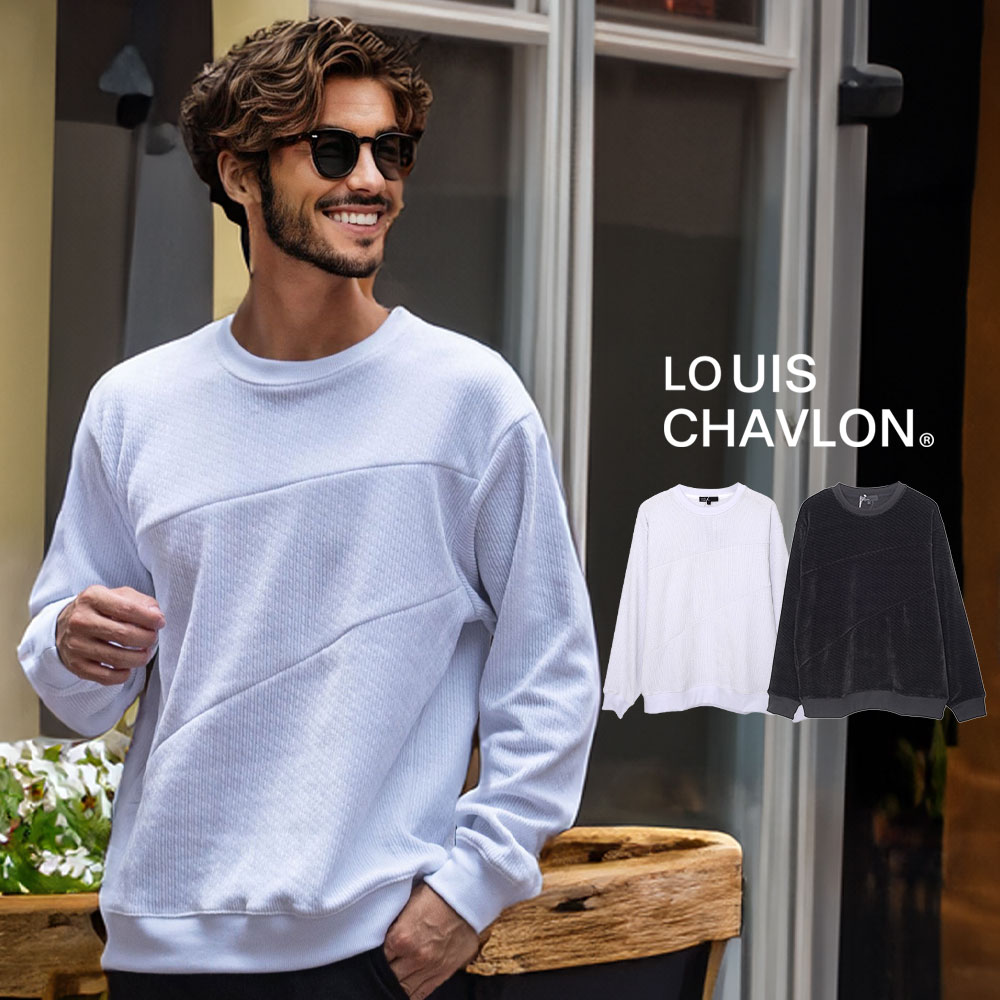 イケオジ トレーナー メンズ ちょい悪 オヤジ ミスタ—ジョージ ダンディ 40代 50代 60代 長袖 大きいサイズ トップス スウェット 起毛 暖かい 無地 プルオーバー ゆったり ホワイト ブラック 黒 LOUIS CHAVLON 服 秋 冬 メンズファッション おしゃれ