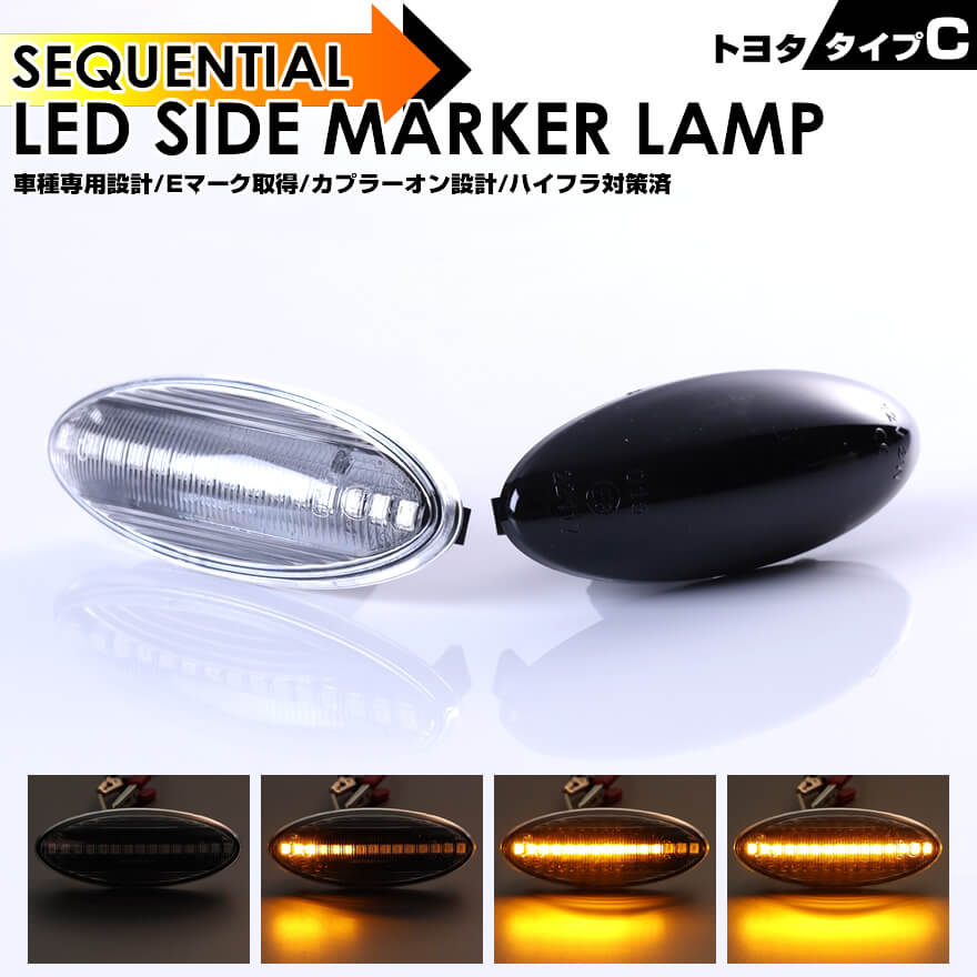 クリックポスト(追跡あり)トヨタ タイプ C ウインカー シーケンシャル LED サイドマーカー カローラアクシオ 140系 NZE141 NZE144 ZRE142 ZRE144 カローラフィールダー 140系 NZE141G NZE144G ZRE142G ZRE144G サクシード 160系 NCP160V NCP165V