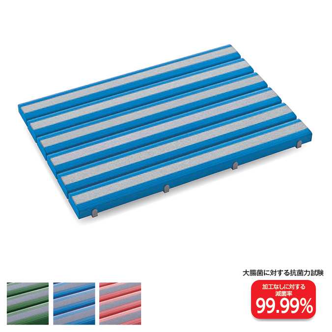 抗菌すべり止め安全すのこ 屋内専用 大腸菌に対する抗菌力試験で「抗菌加工なし」に対する減菌率99.99%!! プールや脱衣室など滑りやすい水廻りでの使用に最適です。 ■抗菌安全スノコ・抗菌すべり止め安全スノコには、狭い所に便利な40cm幅タイプもあります。 更衣室のロッカー前や幼稚園の下足場などの足元だけに使用したいときや、狭い場所に最適なサイズです。 ■お客様組立品 梱包仕様 コンパクト梱包でお届けします。 素足で歩く所や浴室内、ロッカールーム、シャワー室などに。 抗菌剤入りで清潔&快適! サイズ:600×900mm 材質:本体:硬質塩化ビニール、カバー:ポリエチレン(再生樹脂)、テープ:ポリエステル カラー:緑・青・ピンク 厚さ:約48mm 重量:1m2に付約8.7kg ●受注生産品です。納期は受注後、約1週間です。 ●抗菌・防カビ剤入 ●別注サイズは〈完成品〉600×1800mmまで、〈お客様組立品〉600×2500mmまで製作できます。 ●メーカー組立品は巾60cm(10cm単位)×1.8mまで発送可能です。 ●施工費は別途申し受けます。 ●屋内にてご使用ください。 ●テープは素足での使用を想定しています。土足での使用はお控えください。 合計金額で送料無料の場合や送料無料の商品でも配送先が沖縄、北海道の場合は別途送料が必要になります。ご注文時に送料が無料になっている場合がありますが、後ほど送料を修正し正式な金額をご連絡いたします。 ※注意点 モニターの発色によりお色が違って見える場合がございます。抗菌すべり止め安全スノコ テラモト プールや脱衣室など滑りやすい水廻りでの使用に最適です。 関連商品・サイズ バリエーション 抗菌すべり止め安全スノコ【600×900mm】お客様組立品 抗菌すべり止め安全スノコ【600×1200mm】お客様組立品 抗菌すべり止め安全スノコ【600×1800mm】お客様組立品 抗菌すべり止め安全スノコ 青【400×900mm】完成品 抗菌すべり止め安全スノコ 青【400×1800mm】完成品 抗菌すべり止め安全スノコ【600×900mm】完成品 抗菌すべり止め安全スノコ【600×1200mm】完成品 抗菌すべり止め安全スノコ【600×1800mm】完成品