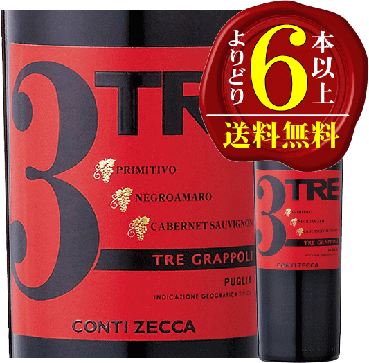 【よりどり6本以上で送料無料】トレ・グラッポリ コンティ・ゼッカ 赤ワイン・辛口フルボディ・重口 750mlアジィエンダ・アグリコーラ・コンティ・ゼッカ Azienda Agricola Conti Zecca TRE grappoli Rosso Conti Zecca