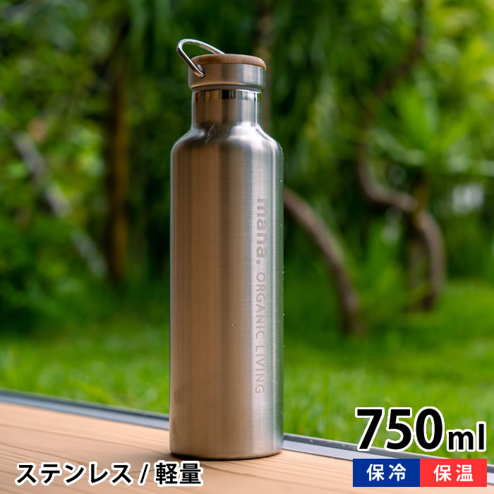 マナ オーガニック リビング 水筒 ステンレスボトル 750ml 直飲み おしゃれ ステンレス ボトル アウトドア ダイレクト 保冷 保温 魔法瓶 キャンプ 大容量 真空二重構造 大人 シンプル かわいい ハンドル付き オフィス スポーツ 携帯