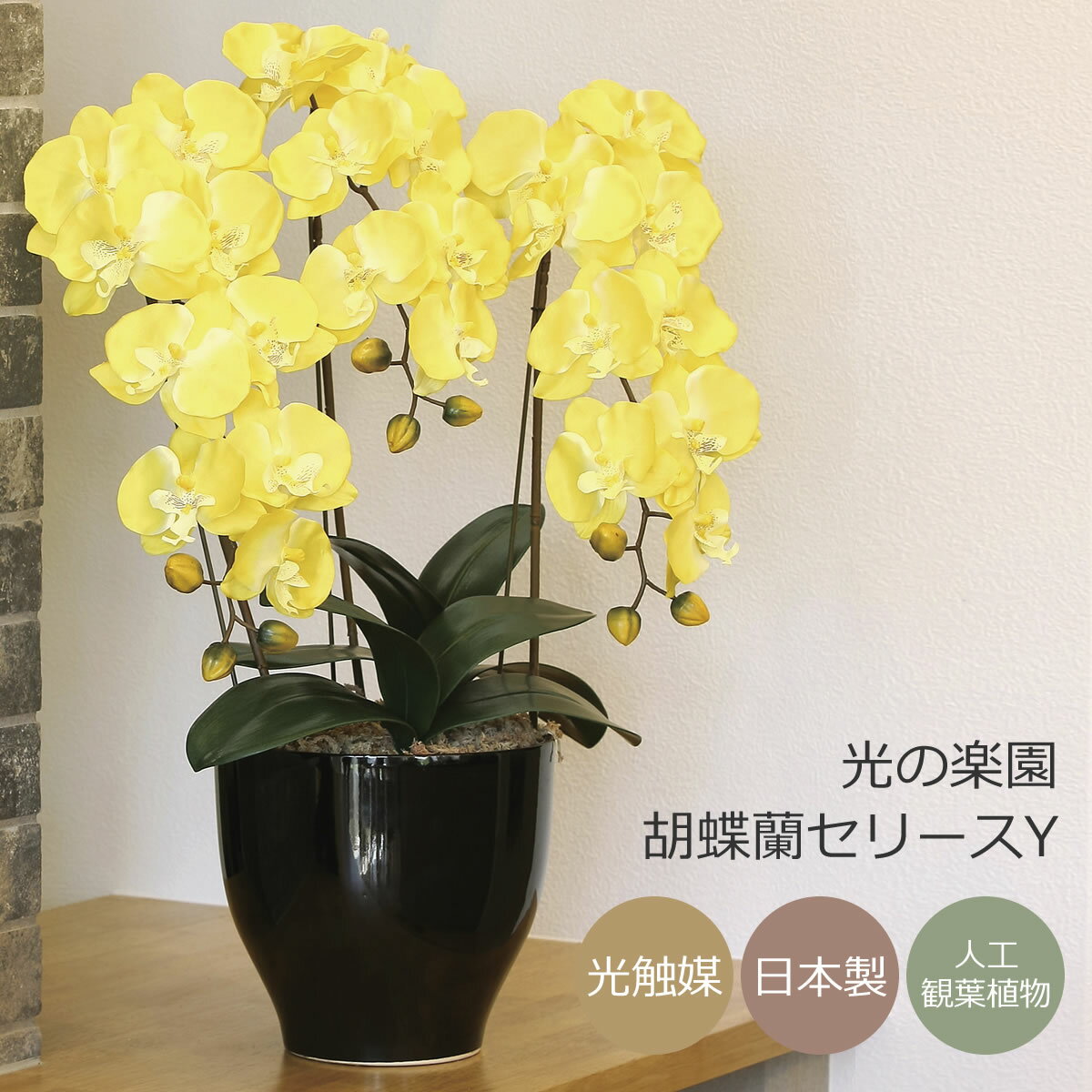 光の楽園(2025年版) 胡蝶蘭セリースY 品番:917K120 高さ:66cm - アートクリエイション [光触媒/人工観葉植物]