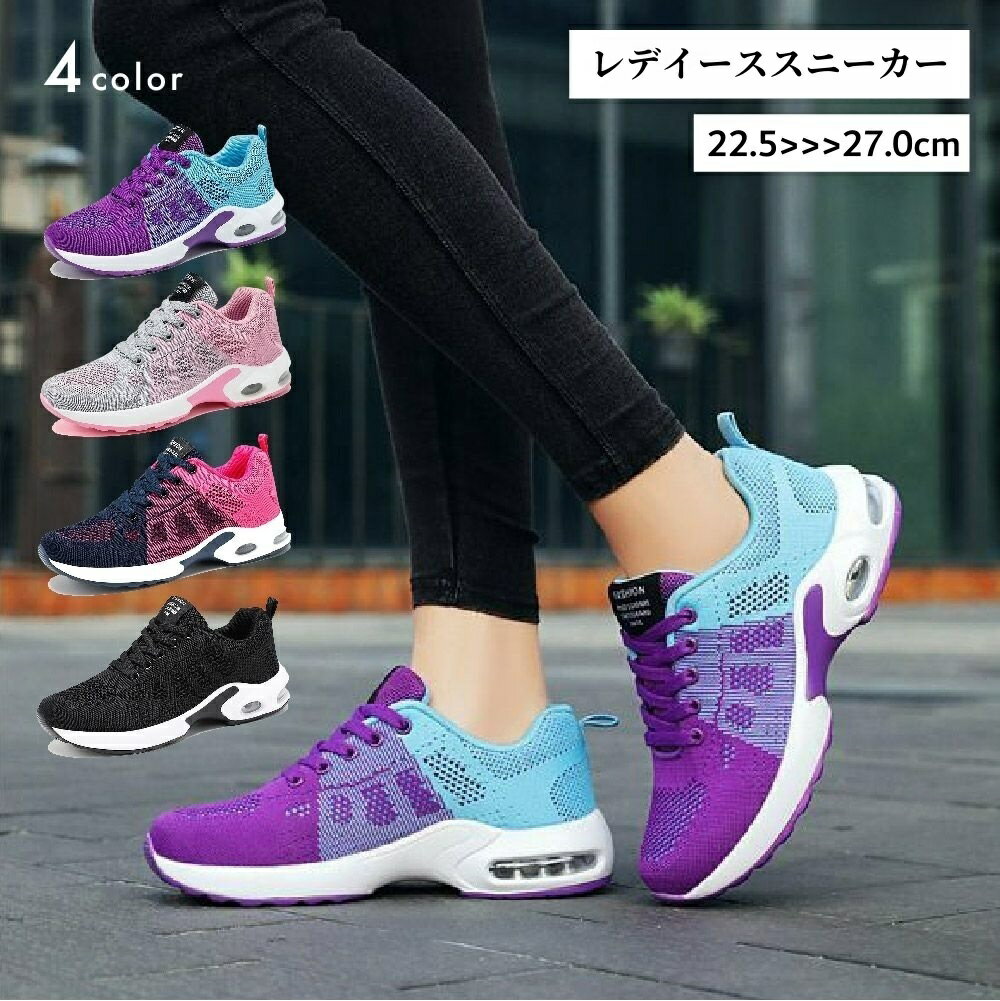 送料無料 スニーカー レディース 女性用 靴 シューズ バイカラー 配色 エアクッション エアー入り おしゃれ かわいい スポーティー カジュアル 運動靴 スポーツ ウォーキング ジョギング ブラック ピンク パープル 黒 紫