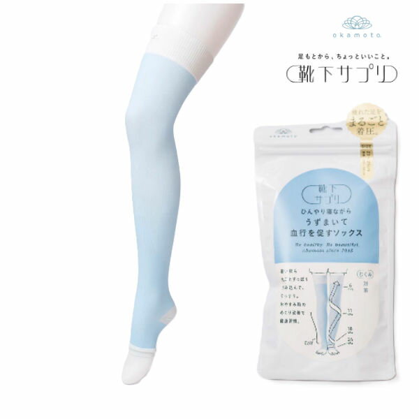 岡本 靴下サプリ 寝ながらうずまいて血行を促すソックス ロング丈 オカモト 靴下 レディース 両足 ブルー 23.0~25.0cm 638-991-24-64