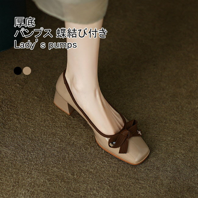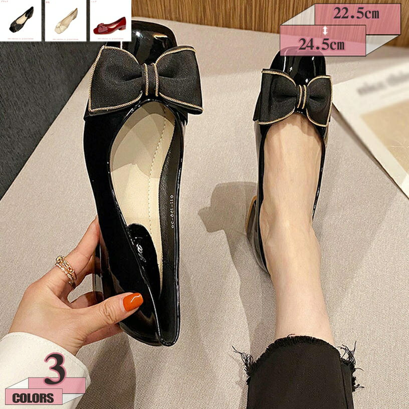 【送料無料】パンプス レディース フラットシューズ 靴 浅口 スクエアトゥ 太ヒール 光沢感 蝶結び付き 大人可愛い 柔らかい 滑りにくい 脱げない 疲れない 歩きやすい 履きやすい 快適 美脚 通勤 通学 出掛け 春夏秋 キレイめ カジュアル ローファー