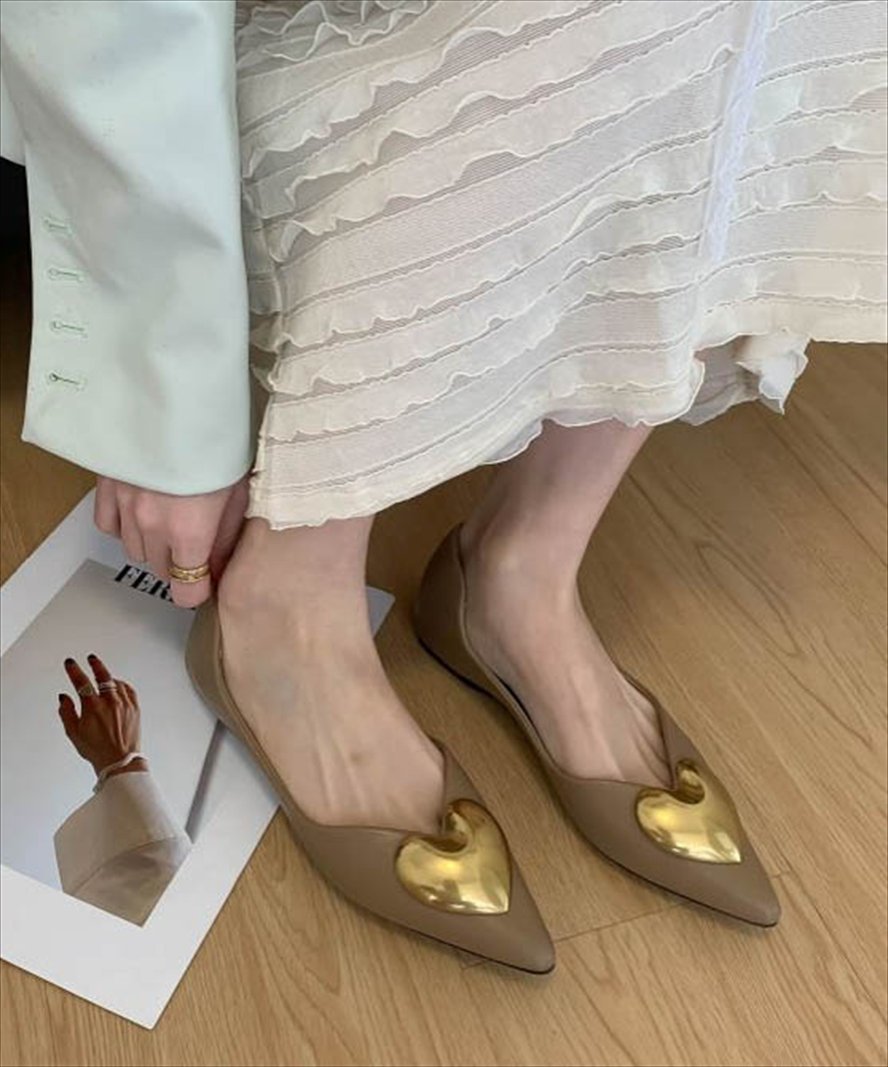 Lajour(ラジュール)ハートモチーフパンプスコーデのアクセントに大人可愛いぺたんこパンプス目を惹く大きめのハートモチーフが大人可愛いパンプス。フラットなパンプスで楽ちんながらも疲れない!履くだけで一気にコーデが可愛らしくなる主役級アイテムです。Point01履き心地のいいローヒール歩きやすいローヒールで、ヒールが苦手な方にもおススメ♪Point02高見えデザインコーデの主役になるパンプス。立体的なハートモチーフがとことん可愛い。ゴールドのモチーフとPUレザーの相性抜群な高見えアイテムです。■スタッフ着用コメント---------------------------------スタッフTさん[普段のサイズ]スニーカー:24.5-25cm、パンプス:24.5cmエジプト型=甲周り:23cm、足囲:22.5cm、足長:24cm<着用サイズ:38>足長:ちょうどいい甲幅:若干きつめ素足で履いて、横幅がきつめで長さはぴったりでした。歩いてたら横幅が痛くなるかなー?って感じですが、柔らかい皮革なので履いていく内に馴染んでくると思います。---------------------------------〇スタッフKさん[普段のサイズ]スニーカー:23.5-24cm、パンプス:23.5cmギリシャ型=甲周り:22cm、足囲:21.5cm、足長:23.5cm<着用サイズ:38>足長:大きい甲幅:余裕がある靴下をはいても全体的に大きかったです。横幅は若干、かかとは歩いたら脱げるぐらい大きいので購入するならワンサイズダウンで大丈夫だと思います。---------------------------------〇スタッフOさん[普段のサイズ]スニーカー:24-24-24.5cm、パンプス:24cmエジプト型=甲周り:21.5cm、足囲:22.5cm、足長:24.5cm<着用サイズ:38>足長:大きい甲幅:ぴったり靴下をはいて履きましたが少し大きかったです。甲幅はピッタリですが、かかとが余り、スカスカでした。買うならワンサイズ下を購入します。---------------------------------型番:ash308-072-002-512 PY8379【採寸】【35】長さ:22.0-22.5cm / 甲幅:8.5cm【36】長さ:22.5-23.0cm / 甲幅:8.5-9cm【37】長さ:23.0-23.5cm / 甲幅:9cm【38】長さ:23.5-24.0cm / 甲幅:9-9.5cm【39】長さ:24.0-24.5cm / 甲幅:9.5-10cm商品のサイズについて【商品詳細】中国素材:PUサイズ:35、36、37、38、39※画面上と実物では多少色具合が異なって見える場合もございます。ご了承ください。商品のカラーについてLajour(ラジュール)ハートモチーフパンプスコーデのアクセントに大人可愛いぺたんこパンプス目を惹く大きめのハートモチーフが大人可愛いパンプス。フラットなパンプスで楽ちんながらも疲れない!履くだけで一気にコーデが可愛らしくなる主役級アイテムです。Point01履き心地のいいローヒール歩きやすいローヒールで、ヒールが苦手な方にもおススメ♪Point02高見えデザインコーデの主役になるパンプス。立体的なハートモチーフがとことん可愛い。ゴールドのモチーフとPUレザーの相性抜群な高見えアイテムです。■スタッフ着用コメント---------------------------------スタッフTさん[普段のサイズ]スニーカー:24.5-25cm、パンプス:24.5cmエジプト型=甲周り:23cm、足囲:22.5cm、足長:24cm<着用サイズ:38>足長:ちょうどいい甲幅:若干きつめ素足で履いて、横幅がきつめで長さはぴったりでした。歩いてたら横幅が痛くなるかなー?って感じですが、柔らかい皮革なので履いていく内に馴染んでくると思います。---------------------------------〇スタッフKさん[普段のサイズ]スニーカー:23.5-24cm、パンプス:23.5cmギリシャ型=甲周り:22cm、足囲:21.5cm、足長:23.5cm<着用サイズ:38>足長:大きい甲幅:余裕がある靴下をはいても全体的に大きかったです。横幅は若干、かかとは歩いたら脱げるぐらい大きいので購入するならワンサイズダウンで大丈夫だと思います。---------------------------------〇スタッフOさん[普段のサイズ]スニーカー:24-24-24.5cm、パンプス:24cmエジプト型=甲周り:21.5cm、足囲:22.5cm、足長:24.5cm<着用サイズ:38>足長:大きい甲幅:ぴったり靴下をはいて履きましたが少し大きかったです。甲幅はピッタリですが、かかとが余り、スカスカでした。買うならワンサイズ下を購入します。---------------------------------型番:ash308-072-002-512 PY8379【採寸】【35】長さ:22.0-22.5cm / 甲幅:8.5cm【36】長さ:22.5-23.0cm / 甲幅:8.5-9cm【37】長さ:23.0-23.5cm / 甲幅:9cm【38】長さ:23.5-24.0cm / 甲幅:9-9.5cm【39】長さ:24.0-24.5cm / 甲幅:9.5-10cm商品のサイズについて【商品詳細】中国素材:PUサイズ:35、36、37、38、39※画面上と実物では多少色具合が異なって見える場合もございます。ご了承ください。商品のカラーについてこの商品は先行予約商品のため返品・交換対象外です詳細はこちら >>