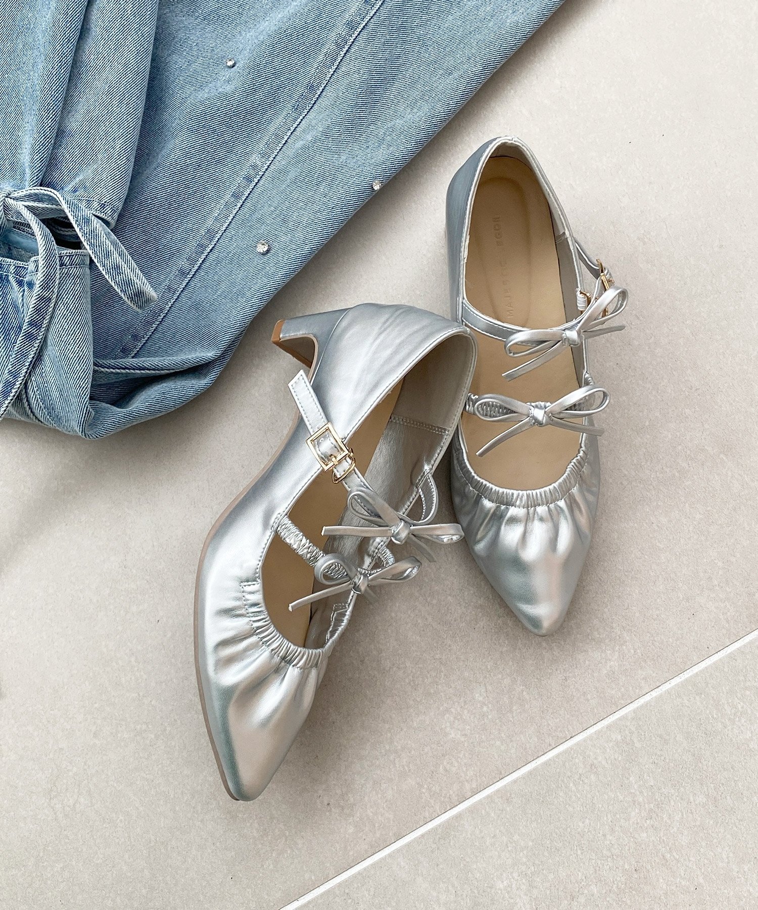 mamian iCoN COLORS:ポインテッドトゥスムースフラットパンプス マミアン シューズ・靴 パンプス シルバー グレー ブラック【送料無料】