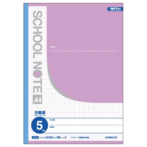 ●SCHOOL NOTE・A4・5mm方眼罫 パープル●罫内容(5mm方眼罫 中心リーダー入)●サイズ(本体 W210×H297 / 本文 W210×H297)●単品重量:180g●適用学年(小学4年生、小学5年生、小学6年生)プリント貼付目印入・簡単に貼り付けできる両面シール付