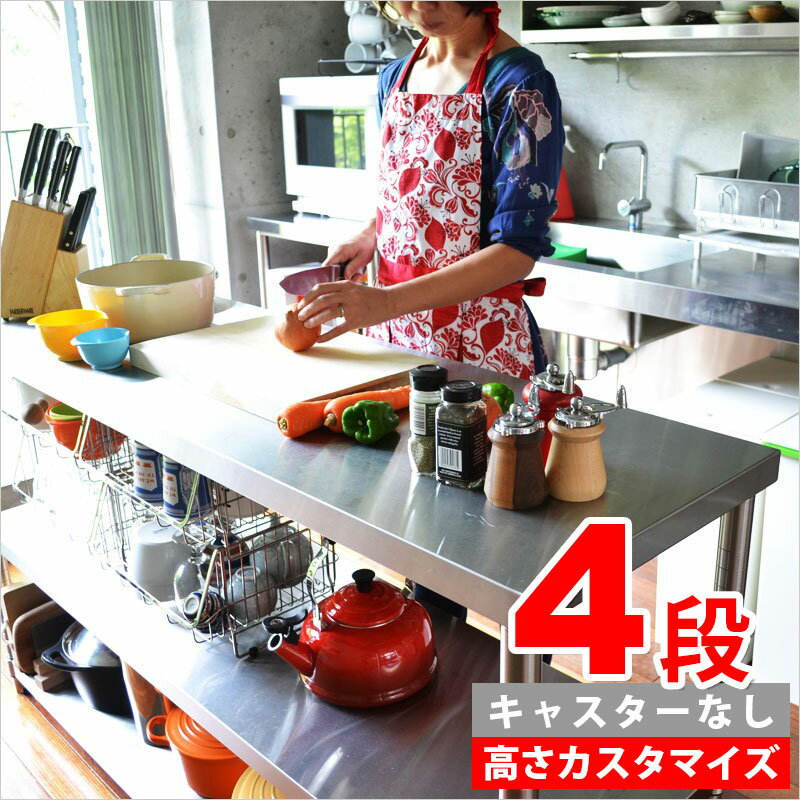 ステンレス作業台 四段 4段 レンジ台 ステンレス台 業務用 作業台 調理台 高さ 調整 コンロ台 キッチン ステンレスラック アイランドキッチン おしゃれ スリム 大型レンジ対応 厨房 棚 キッチンカウンター オーブン キッチン収納 食器棚