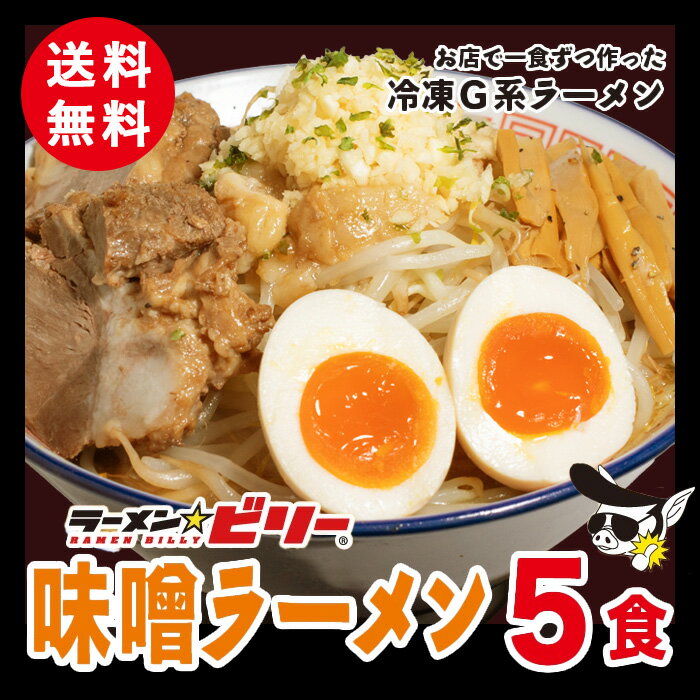ラーメン☆ビリー [ 味噌 ラーメン 5食セット ] 送料無料 アブラ カラメ 刻み生ニンニク付き ラーメンビリー 有名店 スープ 二郎 二郎系 インスパイア 宮城 仙台 らーめん 詰め合わせ 自家製 豚骨 濃厚 味噌 みそ から味噌 醤油 にんにく ニンニク お取り寄せグルメ[RM]