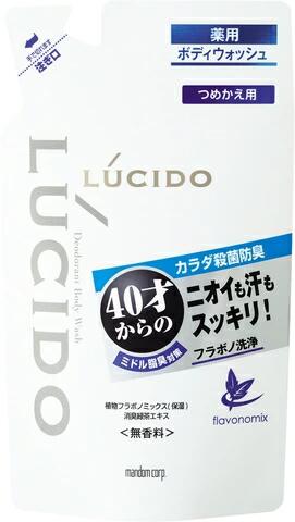 ルシード 薬用デオドラント ボディウォッシュ つめかえ/詰め替え 380mL *医薬部外品 マンダム/40才からのニオイ対策/洗浄・防臭・肌ケア/3つの効果でニオイのない清潔でみずみずしい肌へ導きます/汗臭・加齢臭、40代からピークとなるアブラっぽいミドル脂臭まで集中ケア