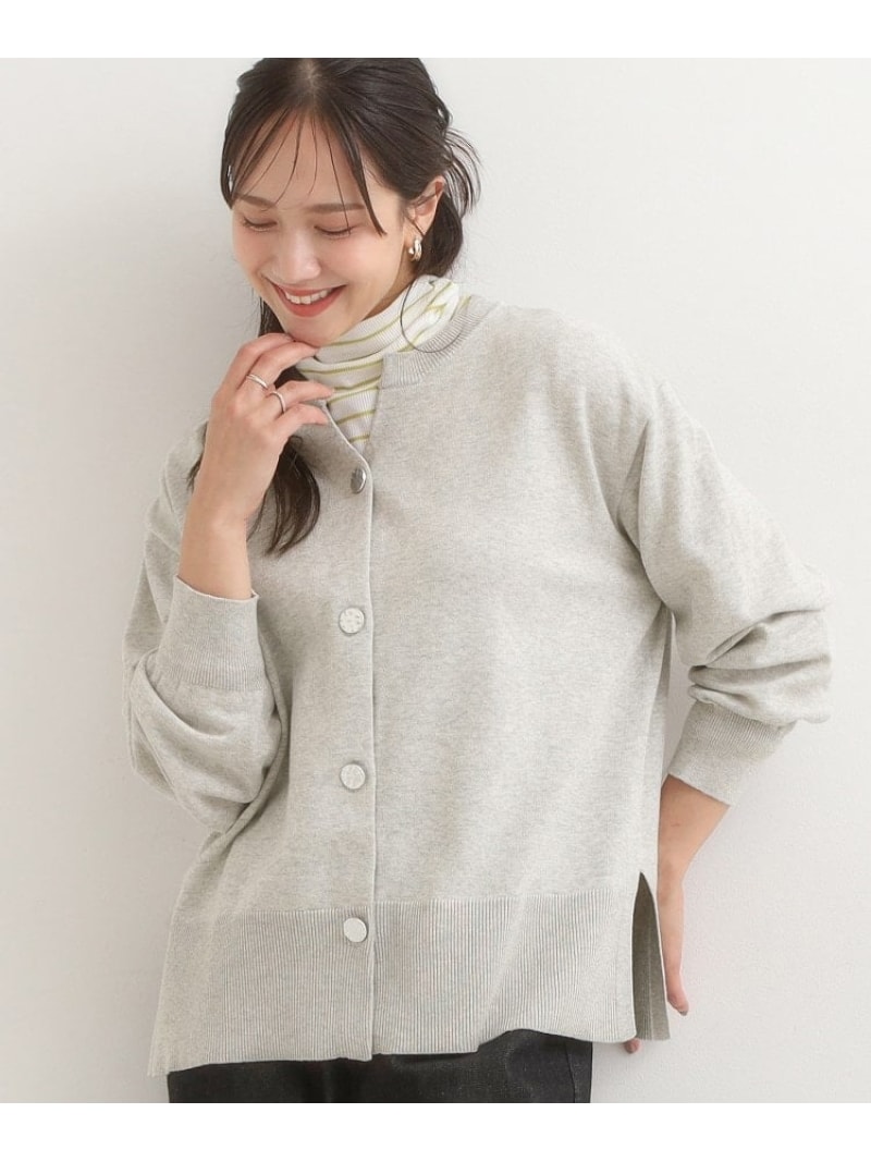 【洗濯機可S-LL】シルバーボタンがアクセント スウェットライク キーネックカーディガン/シューラルー(SHOOLARUE)