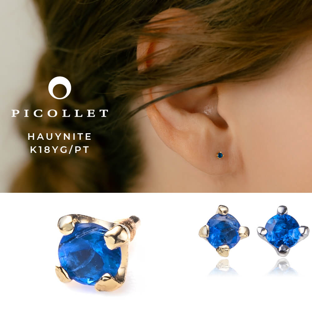 K18/PT アウイナイト ボディピアス │ 16G/14G イエローゴールド/プラチナ 天然カラーストーン 青 希少石 アクセントカラー