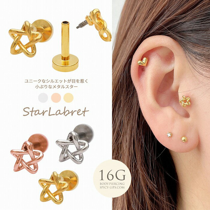 ボディピアス 軟骨ピアス[16G ]さり気ないアクセントに★スター モチーフ 星 starラブレット トラガス ホールに負担の少ないインターナル 0729 ボディーピアス