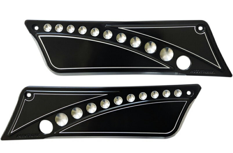 【商品説明】ノーマルのサドルバッグヒンジを活かして、簡単お手軽なインサートのご紹介です。ヒンジごと変えるには高額すぎるし、ただノーマルでは味気ない。そんな方には打って付けのアイテムです。【備考】・Knurled:ブラック・2014年以降ツーリングモデルでハードサドルバッグ装着車に適合・左右セット・品番 35010969・Accutronix(アクトロニクス)ハーレー カスタムパーツサドルバッグラッチ・ヒンジ