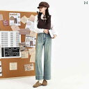 パンツ デニムパンツ レディース スタイリッシュ レトロ ハイウエスト ワイド レッグ ジーンズ 女性 春 韓国 スリム ストレート レッグ 子供