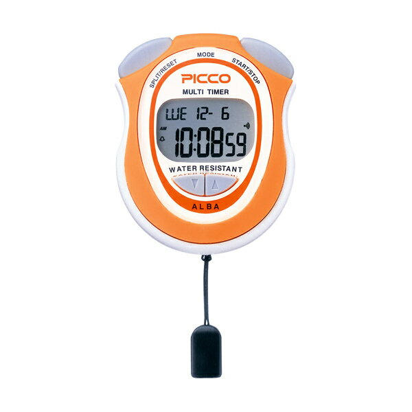 □「返品種別」について詳しくはこちら□メーカー保証期間 1年【ALBA PICCO マルチタイマー】スポーツ時や学習時にも見やすく使いやすいパーソナルタイプのストップウオッチ。タイマー機能がついて便利に使えるストップウオッチ。大きくて見やすい画面。計測時にも時刻が見れる。ボタンを押したときの確認音が鳴らないようにもできます。しっかり握れるデザイン。タイマーがついているので、スポーツに、勉強に、キッチンに使えて便利です。●リピートタイマー機能・ 1秒単位で10秒以上最大99時間59分59秒まで設定可能 ・ リピート回数は無制限 ●ストップウオッチ機能・ スプリット計測 ・ 最大100時間計測 ●サウンドオフ機能(操作確認音鳴り止め可能)●フルオートカレンダー機能●アラーム機能●日常生活防水●本体抗菌仕様●電池寿命:約2年■カラー:オレンジ■重さ:63g■厚み:27.0mm■時間精度: ±0.0012%以内■月差換算: ±30秒以内(常温)時計>国内ブランド腕時計 メンズ>ALBA(アルバ)>ストップウォッチ