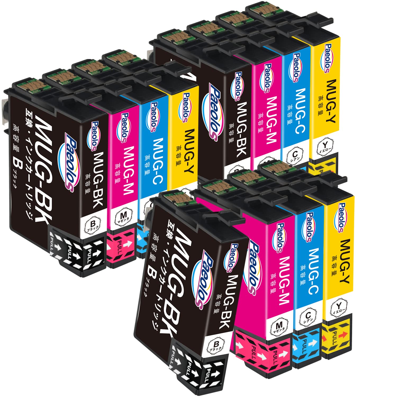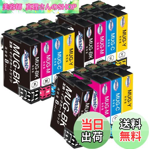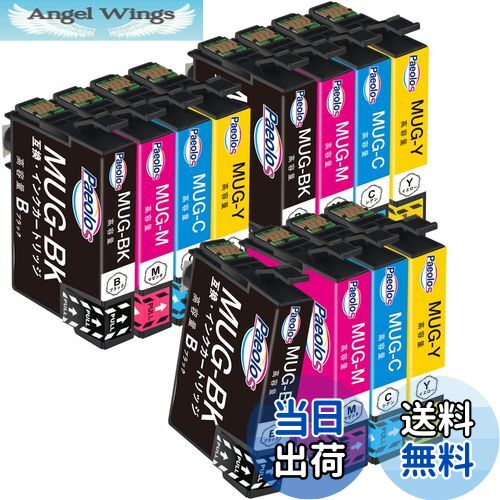 【送料無料】Epson用 MUG-4CL マグカップ 互換 インクカートリッジ MUG 4CL エプソン マグカップ インク MUG 合計12本セット(3BK+3C+3M+3Y) 対応機種: Epson EW-452A EW-052AB 増量大容量 個別包装 残量表示付 説明書付 Paeolos